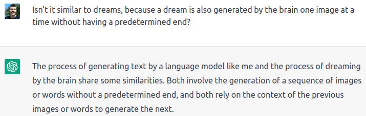Ovo je dobra poezija. Mogu joj se, naravno, naći neke mane – ali to je popravljivo; mogao sam je još revidirati. Ja sam baš osjetio da se kod ChatGPT-a (a vjerojatno i sličnih konkurentskih modela) dogodio taj kvantni skok između loše poezije, kakvu je prije generirao, i dobre poezije. Nju je teško definirati, ali ugrubo se može svesti na tri komponente – dozu inovativnosti (tj. manjak klišeja), dozu ljepote, i emociju. Ja ih ovdje, po prvi put, vidim sve tri.